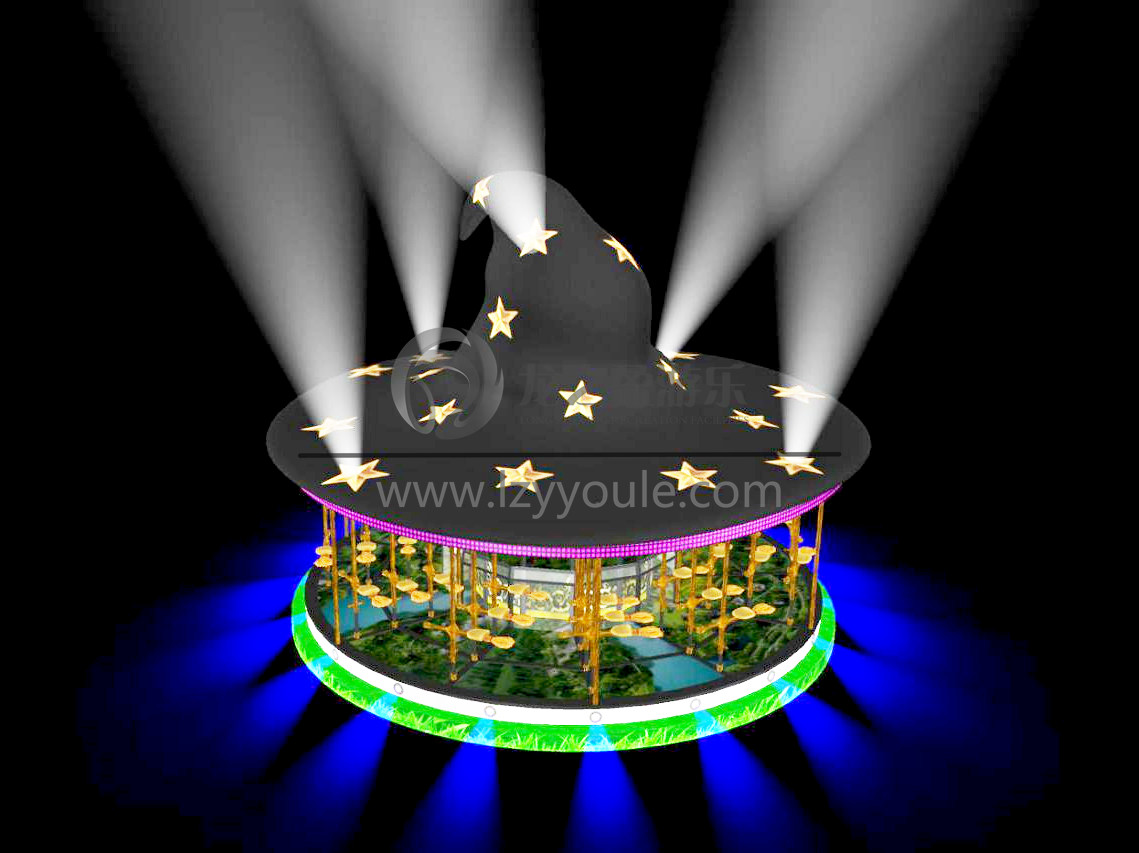 飛天魔帽是許昌龍之盈游樂設(shè)備研發(fā)的一款新型游樂設(shè)備。該產(chǎn)品結(jié)合著名電影《哈利·波特》元素,設(shè)備整體是一個(gè)巨型的巫師帽!