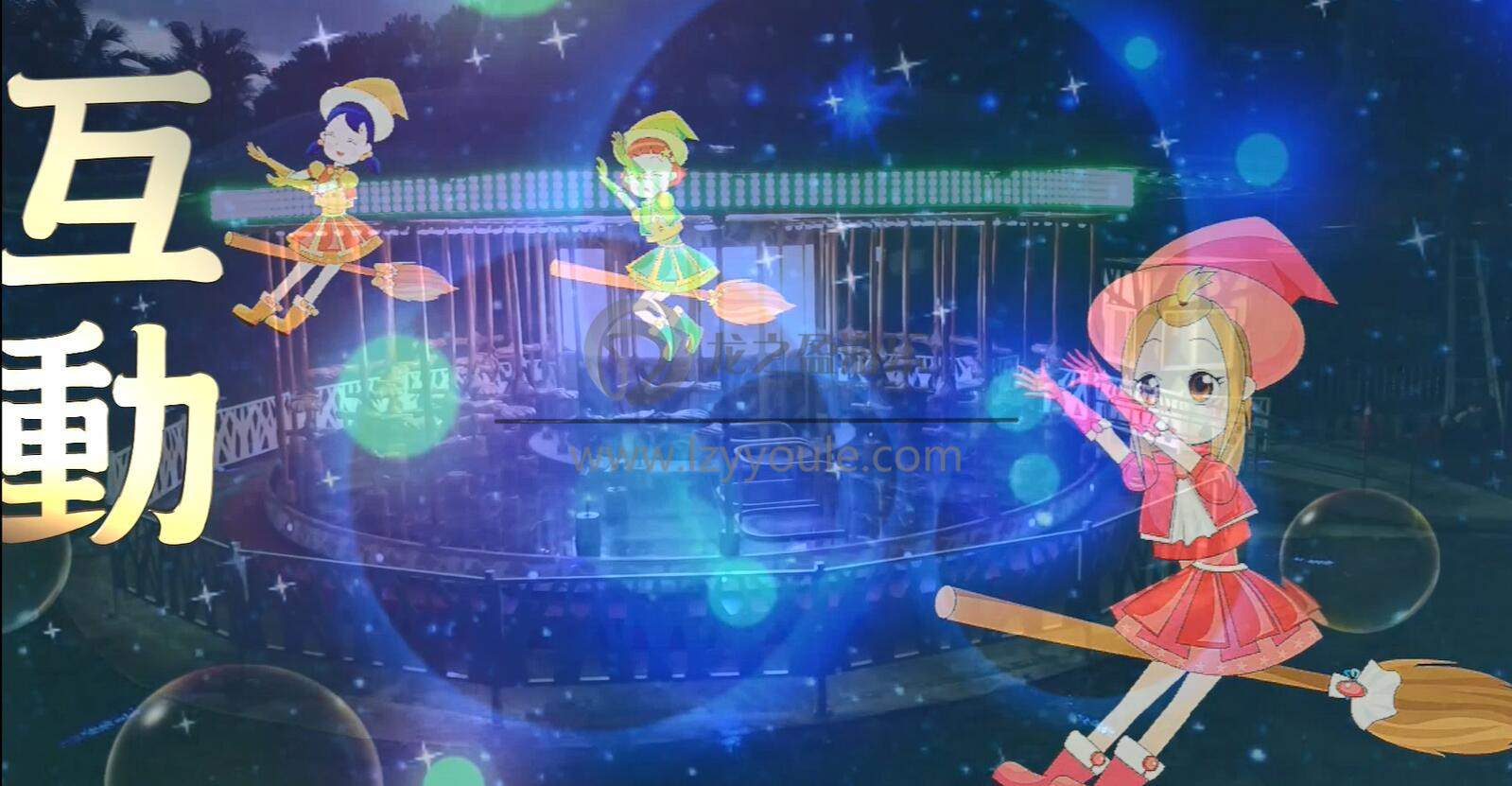 搭配中央顯示屏,結(jié)合精心華麗的天幕與地景,以及奇幻的煙霧、泡泡等特效,提供白天到黑夜的神奇魔法飛行體驗(yàn)。