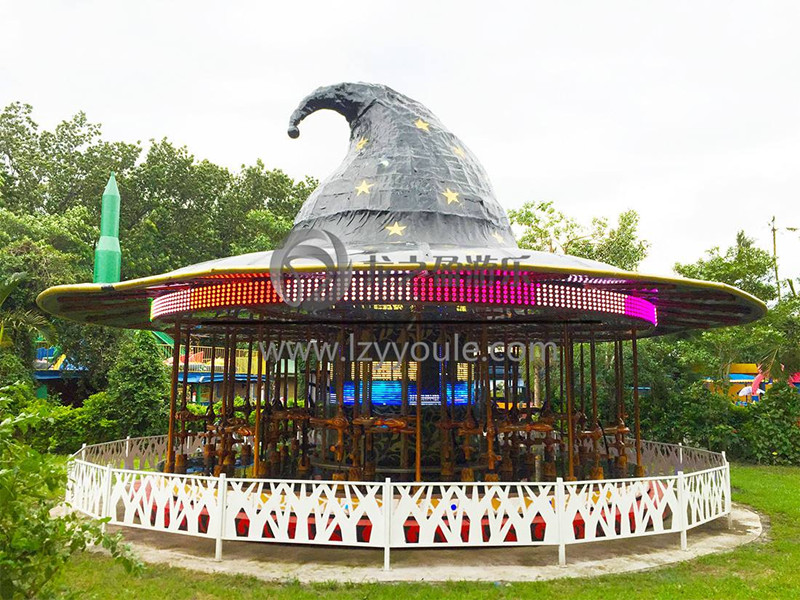 飛天魔帽旋轉(zhuǎn)木馬是由許昌龍之盈游樂設(shè)備有限公司制作,世界*一跳脫傳統(tǒng)設(shè)計(jì),結(jié)合全新科技所設(shè)計(jì)的身臨其境5D呈現(xiàn)的產(chǎn)品,該產(chǎn)品結(jié)合著名電影《哈利•波特》元素,設(shè)備整體是一個(gè)巨型的巫師帽,搭配中央顯示屏,結(jié)合精心華麗的天幕與地景,以及奇幻的煙霧、泡泡等特效,提供白天到黑夜的神奇魔法飛行體驗(yàn)。伴隨著動(dòng)人的音樂,飛天魔帽緩緩起動(dòng)旋轉(zhuǎn)起來(lái),人們坐在哈利波特的魔法掃把上開始自由飛翔,從白天一直飛到黑夜,人們通過(guò)3D地景技術(shù)飛過(guò)的森林,飛過(guò)了山川河流,又飛過(guò)了大海,飛遍了世界每一個(gè)角落,轉(zhuǎn)動(dòng)過(guò)程中煙霧與泡泡不斷的情景創(chuàng)造,都能夠成功吸引他們消費(fèi)目光。